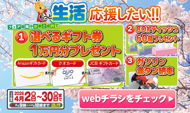 タイヤ交換・点火プラグ交換・ファンベルト交換・クーラーベルト交換・ブレーキパッド交換・オートマオイル(CVT)交換 |